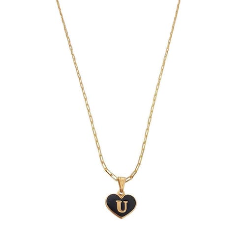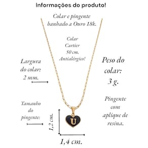 Colar feminino modelo Cartier com pingente Coração negro letra inicial U banhado em Ouro 18k. Delicado e cheio de significado, este colar apresenta um pingente em forma de coração, personalizado com a letra inicial. O colar perfeito para quem deseja manter alguém especial sempre perto do coração. Ideal para presentear ou para adicionar um toque pessoal ao seu estilo diário. Este colar banhado a Ouro é mais que um acessório; é uma declaração de amor. Especificações: Colar Cartier com pingente Coração Negro letra inicia U banhados em Ouro 18k. Tamanho do colar: 50 cm. Peso do colar: 3 g. Espessura do colar: 2 mm. Fecho do colar: lagosta. Antialérgico. Tamanho do pingente: 1,4 x 1,2 cm. Pingente banhado a Ouro com aplique de resina branca. Instruções de uso e conservação: Nossas peças são de excelente qualidade. Para manter o brilho e a beleza da joia; por favor siga estas dicas: Evite o uso da joia durante o banho, ter atenção ao aplique de cremes ou perfumes sobre a joia, evitar banho de piscina e mar com a joia; limpe-as sempre com flanela adequada, guarde-as separadamente. Com estes cuidados básicos a joia manterá sempre a originalidade e qualidade. Acompanha linda caixinha de presentes. sobre defeitos de fabricação: 6 meses. Seguindo nossas orientações de uso no certificado de , a joia permanecerá conservada por longos anos ou até décadas