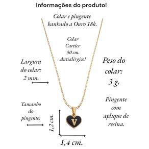 Colar Cartier 50Cm Coração Negro Letra V Banhado Ouro 18K