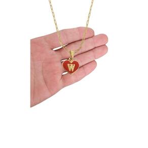 Colar Cartier 50Cm Coração Vermelho Letra W Banhado Ouro 18K