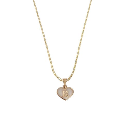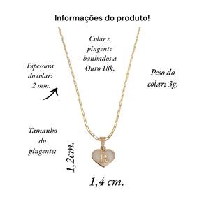 Colar Cartier 60Cm Coração Branco Letra R Banhado Ouro 18K