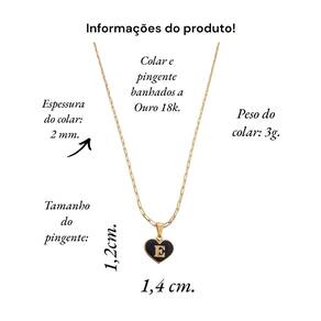 Colar feminino modelo Cartier com pingente Coração negro letra inicial E banhado em Ouro 18k. Delicado e cheio de significado, este colar apresenta um pingente em forma de coração, personalizado com a letra inicial. O colar perfeito para quem deseja manter alguém especial sempre perto do coração. Ideal para presentear ou para adicionar um toque pessoal ao seu estilo diário. Este colar banhado a Ouro é mais que um acessório; é uma declaração de amor. Especificações: Colar Cartier com pingente Coração Negro letra inicia E banhados em Ouro 18k. Tamanho do colar: 60 cm. Peso do colar: 3 g. Espessura do colar: 2 mm. Fecho do colar: lagosta. Antialérgico. Tamanho do pingente: 1,4 x 1,2 cm. Pingente banhado a Ouro com aplique de resina branca. Instruções de uso e conservação: Nossas peças são de excelente qualidade. Para manter o brilho e a beleza da joia; por favor siga estas dicas: Evite o uso da joia durante o banho, ter atenção ao aplique de cremes ou perfumes sobre a joia, evitar banho de piscina e mar com a joia; limpe-as sempre com flanela adequada, guarde-as separadamente. Com estes cuidados básicos a joia manterá sempre a originalidade e qualidade. Acompanha linda caixinha de presentes. sobre defeitos de fabricação: 6 meses. Seguindo nossas orientações de uso no certificado de , a joia permanecerá conservada por longos anos ou até décadas Marca: Anaisa Semijoias