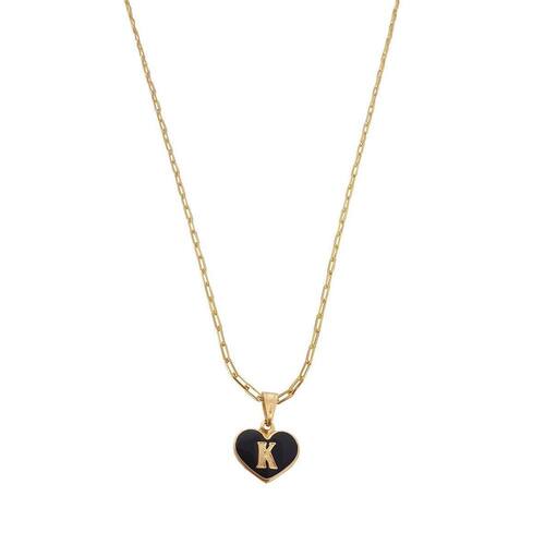 Colar Cartier 60Cm Coração Negro Letra K Banhado Ouro 18K