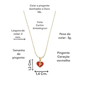 Colar feminino modelo Cartier com pingente Coração Vermelho letra inicial P banhado em Ouro 18k. Delicado e cheio de significado, este colar apresenta um pingente em forma de coração, personalizado com a letra inicial. O colar perfeito para quem deseja manter alguém especial sempre perto do coração. Ideal para presentear ou para adicionar um toque pessoal ao seu estilo diário. Este colar banhado a Ouro é mais que um acessório; é uma declaração de amor. Especificações: Colar Cartier com pingente Coração Vermelho letra inicia P banhados em Ouro 18k. Tamanho do colar: 60 cm. Peso do colar: 3 g. Espessura do colar: 2 mm. Fecho do colar: lagosta. Antialérgico. Tamanho do pingente: 1,4 x 1,2 cm. Pingente banhado a Ouro com aplique de resina branca. Instruções de uso e conservação: Nossas peças são de excelente qualidade. Para manter o brilho e a beleza da joia; por favor siga estas dicas: Evite o uso da joia durante o banho, ter atenção ao aplique de cremes ou perfumes sobre a joia, evitar banho de piscina e mar com a joia; limpe-as sempre com flanela adequada, guarde-as separadamente. Com estes cuidados básicos a joia manterá sempre a originalidade e qualidade. Acompanha linda caixinha de presentes. sobre defeitos de fabricação: 6 meses. Seguindo nossas orientações de uso no certificado de , a joia permanecerá conservada por longos anos ou até décadas Marca: Anaisa Semijoias