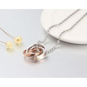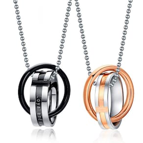 Material: aço inox 316l Banho: ródio negro e ouro rosê Dimensões: Pingente masculino: 20mm x 6mm Pingente feminino: 18mm x 4mm Tamanho total da corrente: 60 cm