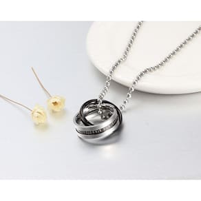 Possui gravação nas argolas formando a frase: Endless love, loyal and steadfast. Tradução: Amor eterno, fiel e inabalável.