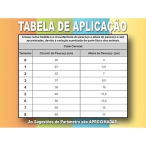 Colar Cervical Pet Med N° 1Colar protetor cervical Cães podem apresentar problemas de coluna em qualquer época da vida, principalmente quando idosos. A pet med oferece o colar protetor cervical confeccionado com tecido confortável. Uma alternativa para manter a imobilidade com muito conforto para o pet. Tudo para que a recuperação do seu amigo seja tranquila e sem estresse. Indicações Vale lembrar que a utilização do colar cervical requer orientação veterinária. Não deve ser utilizado como colar elisabetano, pois é específico para problemas cervicais. Instruções de uso: é fechado através de tiras autocolantesno dorso do animal. Atenção: para se obter o tamanho ideal, verifique a altura desde a base do pescoço até embaixo da orelha, além da circunferência do pescoço do animal. As referências de medidas de circunferência do pescoço e altura do pescoço são aproximadas, devido à variação acentuada do porte físico dos animais. Importante: supervisione o seu animal quando ele utilizar os colares protetores, pois cada animal reage de uma forma diferente. Embora a maioria dos animais não se incomode de usar os colares protetores, alguns poucos animais não se adaptam a quase nenhum acessório. Atenção: certifique-se de que os produtos estejam sempre secos, confortáveis e adequados ao tamanho do seu pet.