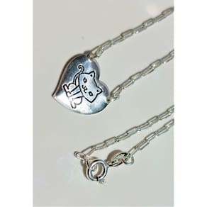 Colar com Pingente Coração Cat Prata 925 Lizzy Fatin As peças Lizzy Fatin são Semijoias folheadas ou banhadas que possuem de 5 a 15 milésimos de material, fabricadas com a mais moderna tecnologia conferindo durabilidade com excelente qualidade e acabamento, com o visual que você espera e merece. Além disso, os metais que antecedem o banho são importantes para determinar a qualidade. Um exemplo é a não utilização de níquel na composição de nossas joias, pois é um metal considerado o principal causador de alergias. Composição da embalagem 01 Corrente Prata 925, tamanho 40cm com Pingente Prata 925 formato de Coração com Desenho de Cat. Embalagem de organza para presentear. Acompanha Certificado de de 01 ano. Pedras Naturais podem sofrer variação de cor e inclusões de tonalidade. Cuidados que farão suas peças ficarem perfeitas por muito tempo. Evite contato com líquidos como água do mar ou piscina, e materiais químicos como perfumes, desodorantes, materiais de limpeza, álcool, etc. Evite atritos ou quedas em superfícies duras, para evitar arranhões ou quebras. Use e abuse de embalagens individuais para guardar seus acessórios como saquinhos, evitando atritos ou contato com umidade e sujidade. Marca: Não Informado