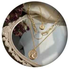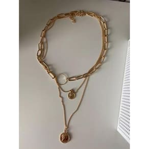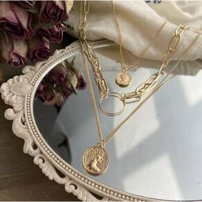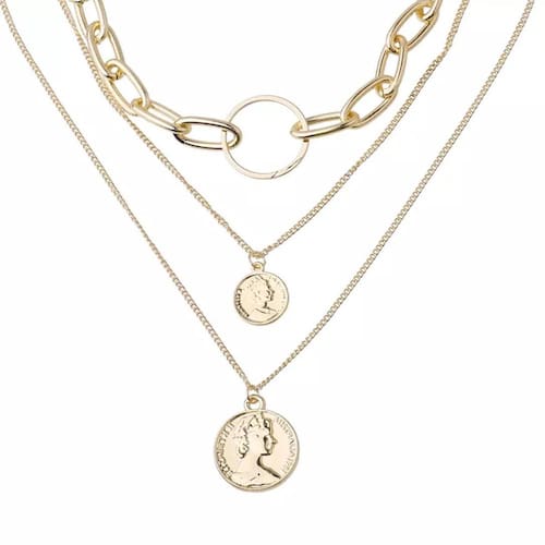 Colar conjunto 3 peças dourado duplo medalhão circulo d2064