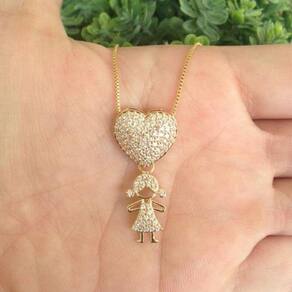 Colar coração cravejado filha menina folheado a ouro Tamanho padrão da corrente 45cm Tamanho do pingente: altura 3,5cm - comprimento 1,2cm - espessura 0,50mm Peso:4,4g Jhulias joias e semi-joias: - acompanha embalagem para presentear - acompanha certificado de - temos uma equipe preparada para te auxiliar no pós venda Jhulias joias e semi joias Qualidade e Marca: Não Informado