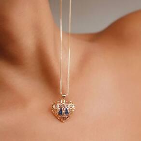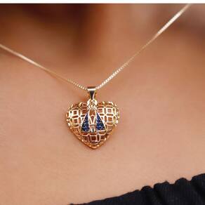 Detalhes Do Produto Corrente - Modelo Veneziana 40 cm + 5 cm de extensor Pingente - Coração Vazado com uma Nossa Senhora Aparecida no centro com o manto cravejado de zircônia azul Material - Semijoia com banho de ouro 18k Acompanha - Bolsinha de veludo com botão personalizada para guardar sua semijoia