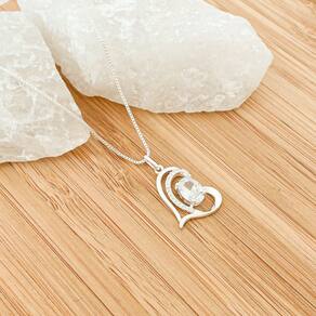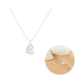 Colar Coração Pedra Oval Zircônias Cristais Banhado a Prata