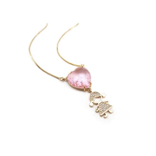 Colar coração rosa com menina banhado em ouro 18k Cor: dourado