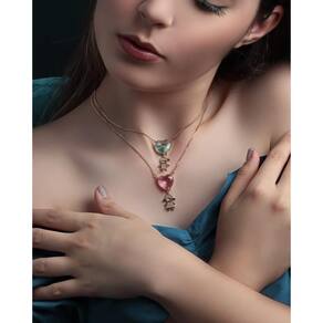 Colar coração rosa menina banhado ouro 18k com zircônias cravejadas nos pingentes. Este colar é marvilhoso e está super na moda o uso das pedrarias.
