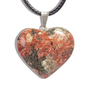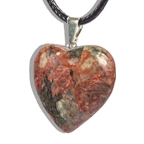 Descubra a beleza da Unakita brasileira: um colar coração de pedra preciosa pino prateado que traz energia e equilíbrio. Adquira o seu agora!