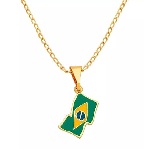 Colar Cordão Bandeira do Brasil Folheado Ouro 18k