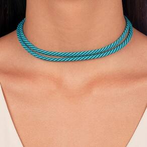 Importante: leia todo o anúncio antes de realizar a compra. Colar cordão color azul. Esta peça está incrivelmente moderna, charmosa e versátil. Você pode usar como colar ou pulseira, qualquer uma das duas maneiras você estará incrível.