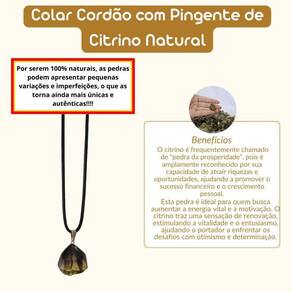 Colar Cordão com Pingente Citrino Natural Colar Cordão com Pingente de Citrino Natural Este colar com cordão e pingente de citrino natural é uma peça encantadora que combina a beleza do citrino com suas poderosas propriedades energéticas. O citrino é uma pedra conhecida por sua capacidade de atrair prosperidade, vitalidade e alegria. Ao ser como pingente, ele não só embeleza o visual, mas também serve como um amuleto que estimula a criatividade, promove o otimismo e fortalece o espírito de abundância. Benefícios Energéticos: Atração de Prosperidade e Abundância: O citrino é frequentemente chamado de pedra da prosperidade, pois é amplamente reconhecido por sua capacidade de atrair riquezas e oportunidades, ajudando a promover o sucesso financeiro e o crescimento pessoal. Renovação Energética e Vitalidade: Esta pedra é ideal para quem busca aumentar a energia vital e a motivação. O citrino traz uma sensação de renovação, estimulando a vitalidade e o entusiasmo, ajudando o portador a enfrentar os desafios com otimismo e determinação. Equilíbrio Emocional e Alegria: O citrino é uma excelente pedra para elevar o ânimo e combater sentimentos negativos. Ele ajuda a liberar o medo, a ansiedade e a tristeza, promovendo uma sensação de alegria, confiança e otimismo, além de fortalecer a autoestima. Por serem 100% naturais, as pedras podem apresentar pequenas variações e imperfeições, o que as torna ainda mais únicas e autênticas. Enviamos em até 24 horas após a confirmação do pagamento Se você tiver alguma dúvida, não hesite em nos mandar uma mensagem Responderemos rapidamente para ajudá-lo da melhor forma possível Marca: Não Informado Ean: 7894135848292