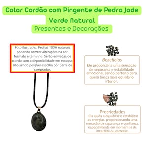 Colar Cordão com Pingente de Pedra Jade Verde Natural