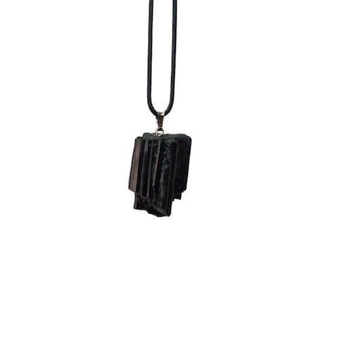 Colar Cordão Com Pingente De Pedra Turmalina Bruta Natural