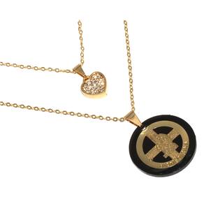 Corrente menor mede aproximadamente 40 Cm, corrente maior mede aproximadamente 45 Cm. Pingente Maior mede aproximadamente 2 Cm.