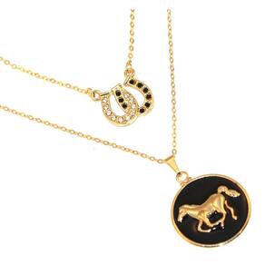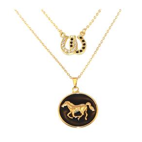 Colar Cordão Duplo Country Ferradura Cavalo Folheado 18k