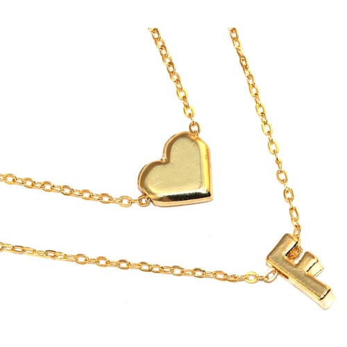Colar Cordão Duplo Minha Inicial F Coração Folheado Ouro 18k