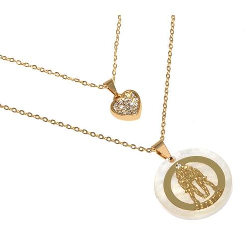 Corrente menor mede aproximadamente 40 Cm, corrente maior aproximadamente 45 Cm. Pingente maior aproximadamente 2 Cm, pingente coração aproximadamente 1 Cm.
