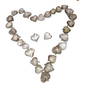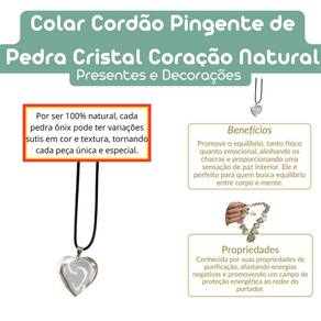 Colar Cordão Pingente de Pedra Cristal Coração Natural Colar Cordão com Pingente de Pedra Quartzo Cristal Natural Este colar com cordão e pingente de pedra quartzo cristal natural é uma peça sofisticada e energética, perfeita para quem busca equilíbrio e clareza. O quartzo cristal é uma das pedras mais poderosas e versáteis, sendo conhecido por sua capacidade de amplificar energias, promover a limpeza energética e trazer equilíbrio mental e emocional. Ao ser Utilizado como pingente, ele não só adiciona um toque elegante ao seu visual, mas também age como um amuleto que favorece a purificação, a clareza mental e o fortalecimento da energia pessoal. Benefícios Energéticos: Amplificação de Energia: O quartzo cristal é conhecido por sua habilidade de amplificar as energias ao redor, seja para potencializar os efeitos de outras pedras ou para fortalecer a energia do portador. Ele pode aumentar a vibração energética e auxiliar em processos de cura e equilíbrio. Purificação e Limpeza Energética: Esta pedra é uma das mais poderosas para purificação de energias. Ela limpa ambientes e a aura do portador, removendo bloqueios e influências negativas, criando um campo energético mais harmonioso e saudável. Clareza Mental e Equilíbrio Emocional: O quartzo cristal é altamente eficaz em trazer clareza mental, promovendo decisões mais racionais e equilibradas. Ele também ajuda a equilibrar as emoções, proporcionando uma sensação de paz interior, tranquilidade e calma. Por serem 100% naturais, as pedras podem apresentar pequenas variações e imperfeições, o que as torna ainda mais únicas e autênticas. Enviamos em até 24 horas após a confirmação do pagamento Se você tiver alguma dúvida, não hesite em nos mandar uma mensagem Responderemos rapidamente para ajudá-lo da melhor forma possível Marca: Meta Atacado