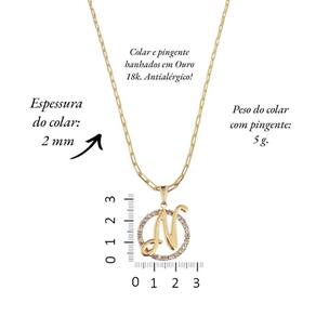 Colar Corrente 50 Cm Feminina Pingente Letra N Banhado Ouro