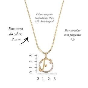 Colar Corrente 60 Cm Feminina Pingente Letra F Banhado Ouro