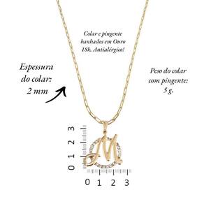 Colar Corrente 60 Cm Feminina Pingente Letra M Banhado Ouro