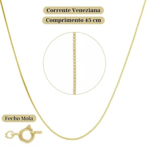 Nossa corrente é feita com o mais alto padrão de qualidade, com um delicado banho de ouro que brilha intensamente. Ela é o equilíbrio perfeito entre estilo e durabilidade, garantindo que você possa desfrutar de sua beleza