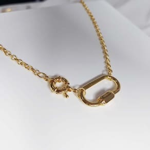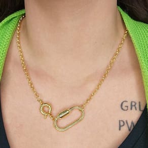 O colar com corrente de elo largo é um item completo que transforma composições simples em marcantes pelo seu fecho em boia com mosquetão.