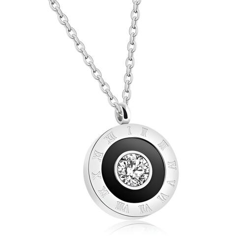 Um colar elegante e sofisticado com pingente em forma de círculo, adornado com números romanos e uma pedra de zircônia central. Este design harmonioso combina a atemporalidade dos números romanos com o brilho deslumbrante da zircônia, criando uma peça de joalheria que exala classe e refinamento. O círculo perfeitamente delineado e a pedra central cintilante fazem deste colar uma escolha ideal para ocasiões especiais ou para adicionar um toque de elegância ao dia a dia. Uma adição encantadora e distinta para qualquer coleção de joias.