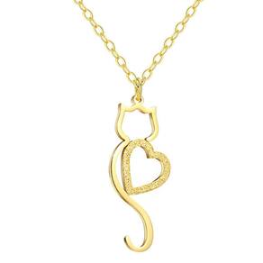 Colar feminino com pingente de gatinho e coração banhado a ouro 18k