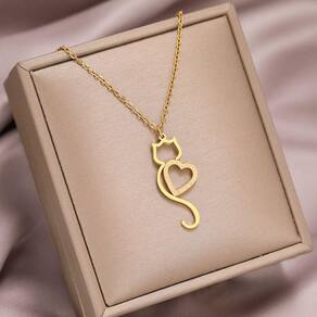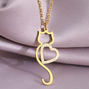 Lindo colar com pingente de gatinho e coração com brilho, possui um design único e delicado, inspirado na elegância e beleza dos felinos. Ideal para quem tem seu melhor amigo de quatro patas.