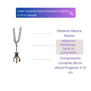 O Colar Corrente Maria Mulambo Tridente da Bialluz é confeccionada em Zamac garantindo alta resistência e durabilidade. A corrente possui 58 cm de comprimento, mas é totalmente regulável podendo ser usada por qualquer pessoa, além de contar com um pingente maravilhoso que emanará ótimas energias em sua vida. É uma maravilhosa opção de presente, com certeza a pessoa que receberá sentirá muita gratidão por ter uma peça tão bela.