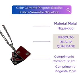 Colar Corrente Pingente Baralho Preto e Vermelho 2 cm Niquel Desperte a magia com nossa delicada Corrente com Pingente Zé Pelintra Baralho Preto e Vermelho na Umbanda.
