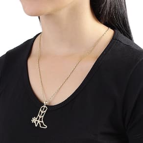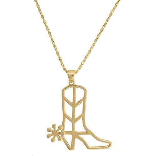 Colar Country Bota com Espora marca Espora Country, fabricado em Metal Nobre banhado com 10 milésimos de ouro 18K, possui alto brilho e perfeito acabamento. Pingente vazado em forma de Bota com Espora e corrente fina.