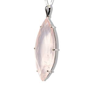 Pedra: Cristal Rosa Natural de garimpo, lapidado artesanalmente. Cor: Rosa translúcida com brilho suave e vítreo. Corte: Oval facetado, destacando a suavidade e beleza da pedra. Tamanho da Pedra: 65 mm de altura x 23 mm de largura. Peso da Pedra: 27 gramas. Montagem: Garra e presilha em prata 950, garantindo firmeza e durabilidade.