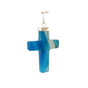 Crucifixo Pingente Pedra Agata Tom Natural de Claro a leve Cinza, lapidação em Cruz totalmente artesanal com polimento, a montagem é feita envolto em dourado.