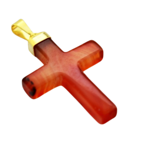Este Colar de Crucifixo Agata Cornalina é uma peça elegante e protetora, que transmite força. Use como amuleto para afastar a negatividade.