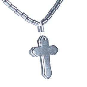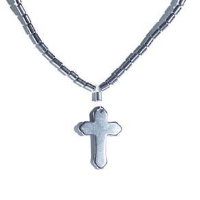 O colar de crucifixo em hematita rolada é uma peça elegante e protetora, que transmite força e estabilidade. Use o amuleto em seu dia a dia.