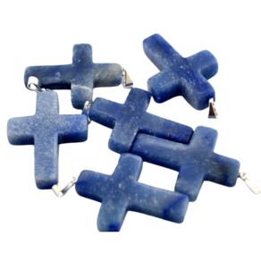 Crucifixo Pingente Pedra Quartzo Azul, lapidação em Cruz totalmente artesanal com polimento, a montagem é feita pino e presilha prateado