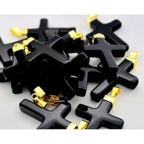 Este colar de crucifixo em quartzo preto é uma peça elegante e protetora, que transmite força. Use como amuleto para afastar a negatividade.