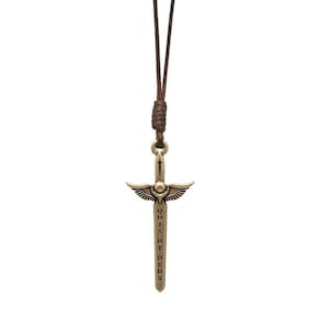 Metal em ouro velho | Cordão marrom | Cruz 2 x 4cm. Aproximadamente 39,5 cm de comprimento
