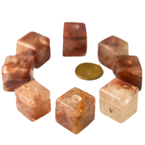 Pingente Difusor Cubo para Aromaterapia Pedra Hematoide Vermelho Ranhurado, Difusor com Lapidação Cubo Rolada com Abertura na Base e Ranhura no corpo para Ajudar na Fixação do Colar. Peça para fazer seu proprio pingente Amarrado com Cordão encerado ou arame. Pingente não Montando Pedra Genuina com origem garimpo lapidação Cubo Rolada.