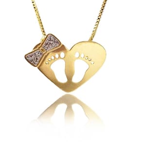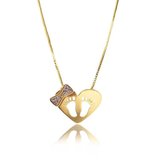 Colar De Coração Com Pézinhos Vazados Folheado Em Ouro18k Gênero:menino