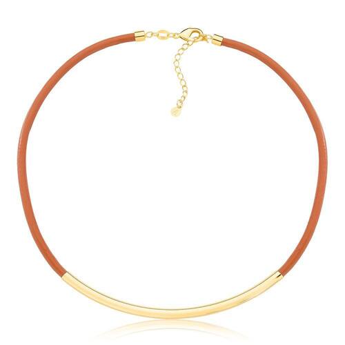 Este colar foi elaborado em Couro Natural, na cor caramelo, com um lindo acessório canutilho longo que acompanha a forma circular da peça. Com metais revestidos em ouro, seu design sofisticado une conforto e beleza, tornando uma peça atemporal e única, de alta durabilidade. Uma linda opção para presentear!