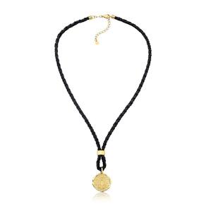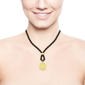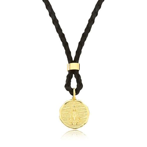 A VL traz nesse lindo colar, uma medalha frente e verso com a Nossa Sra. Aparecida e uma Cruz junto ao couro natural trançado na cor preta. Sua medalha foi desenvolvida com detalhes minimalistas e textura ao fundo, com acabamento refinado e revestimento em Ouro, que garante beleza e sofisticação à essa joia.